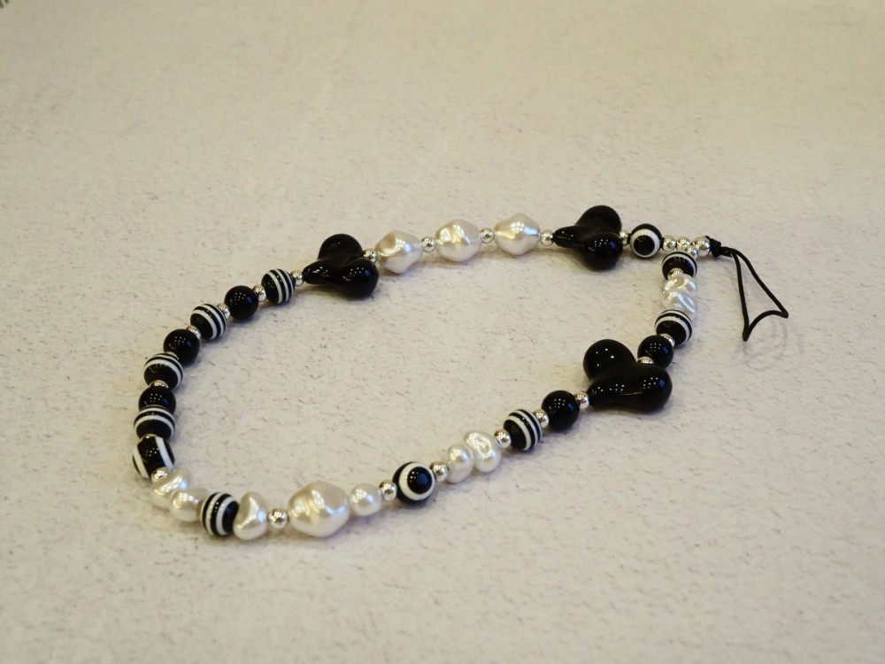 Шнурок для телефона брелок женский украшение браслет на руку (черный полосатый)